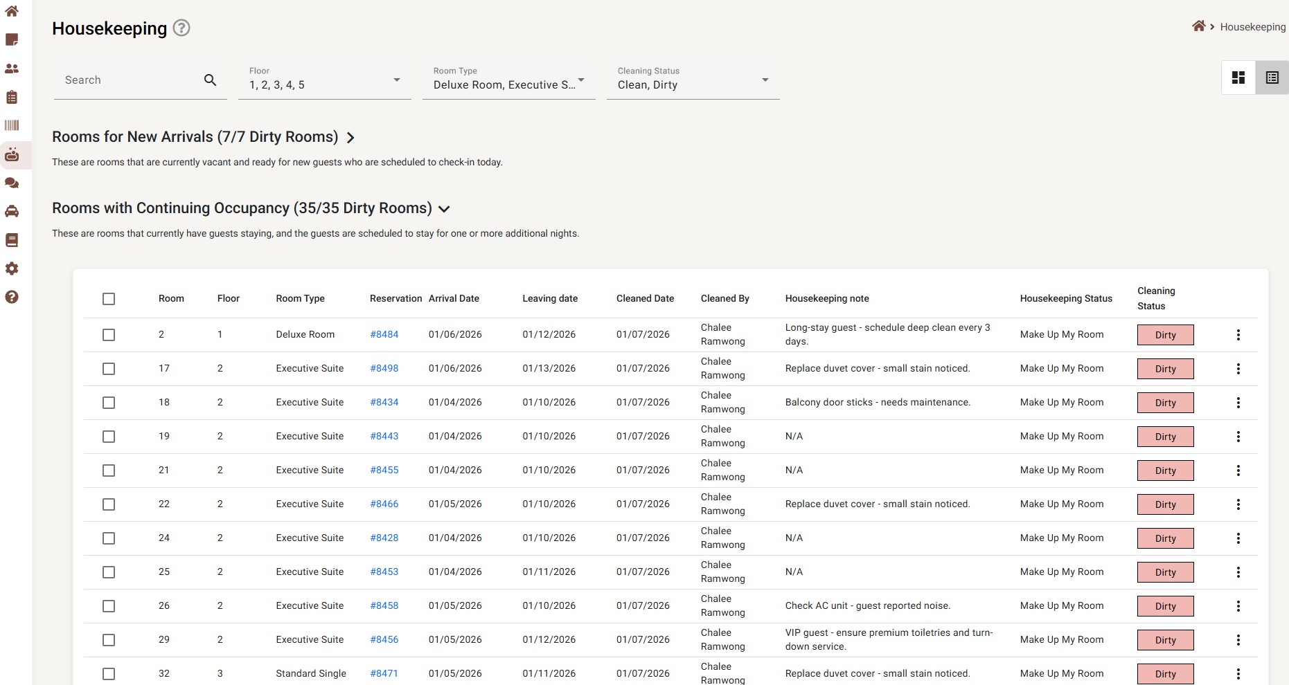 Give housekeeping staff a clear, real-time overview of room statuses across the entire property. This helps teams prioritize tasks, prepare for arrivals, and keep operations running smoothly—without confusion or guesswork.